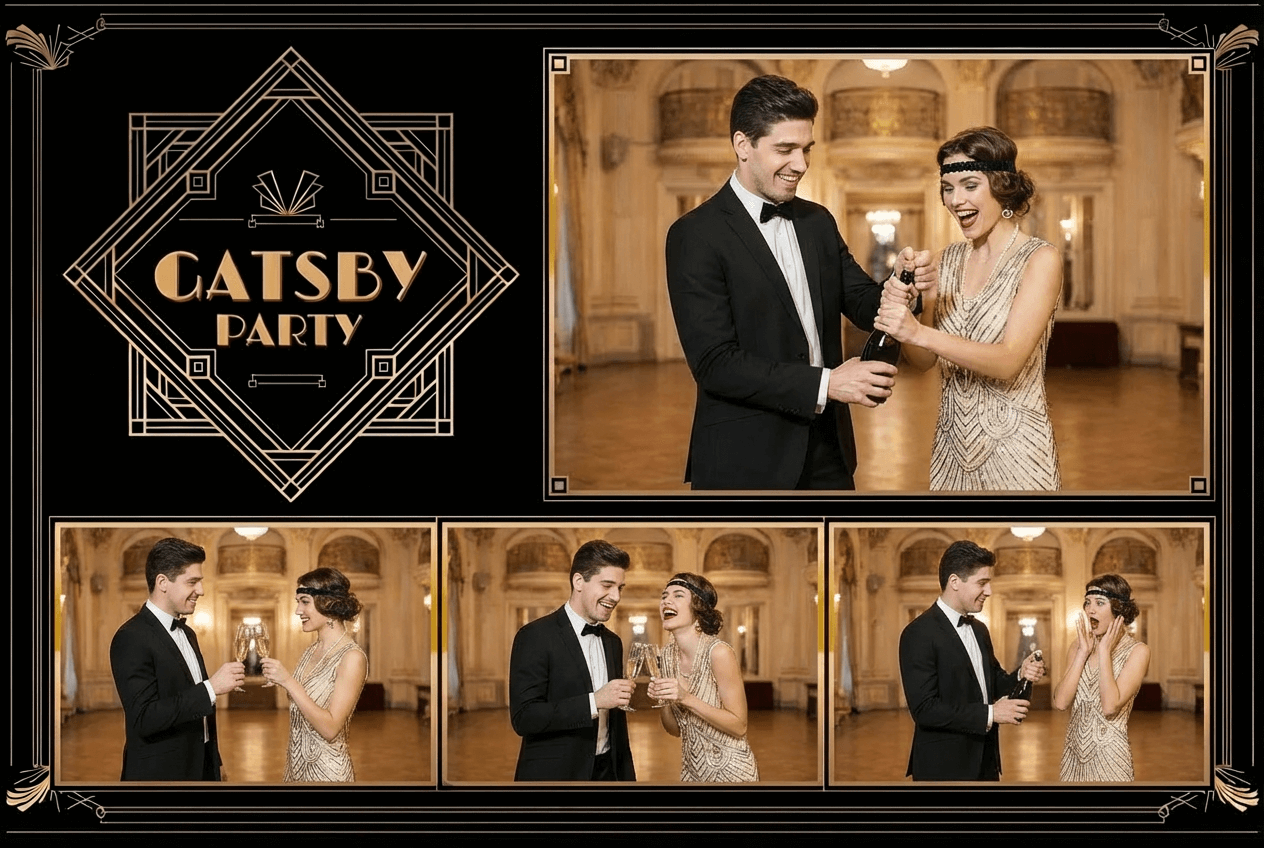 Entdecke unsere kostenlosen Fotolayouts für deine Fotobox! Gestalte deine Aufnahmen ganz nach deinen Wünschen und lade deine Gäste ein, den Spass für immer festzuhalten.