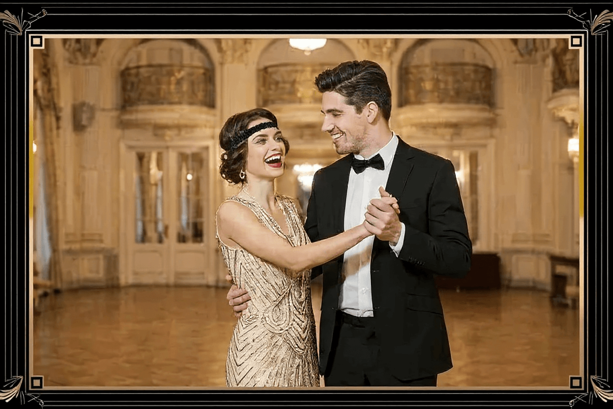 Eleganz der 20er, glamourös und fein, mit Masken und Schmuck fühlst du dich wie ein Star. Für unvergessliche Nächte, voller Stil und Glanz. Mach deine Feier zum aufregendsten Tanz!